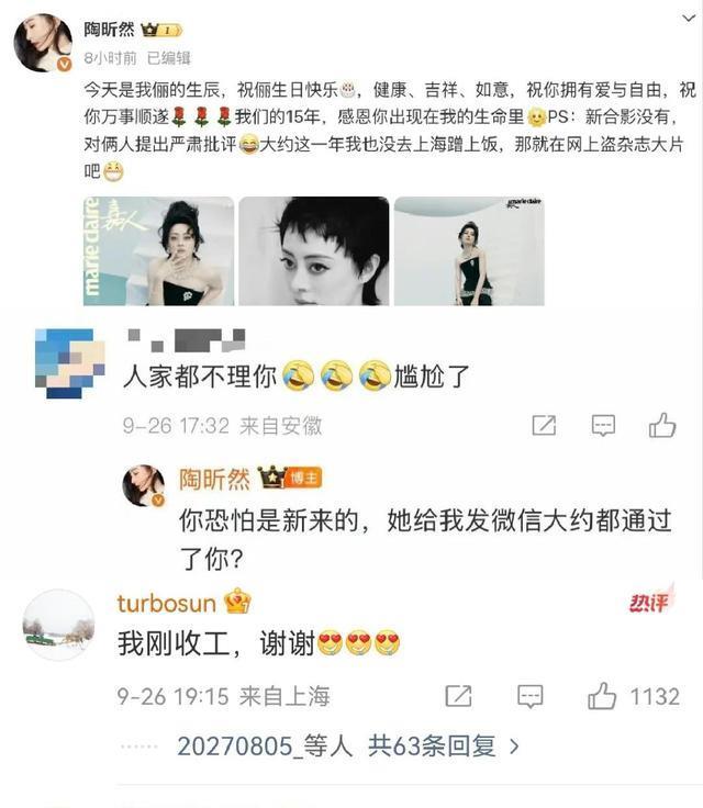 演员们经常会与跟自己关系好的演员互送生日祝福。